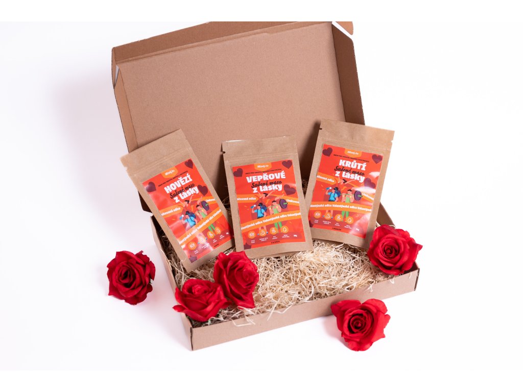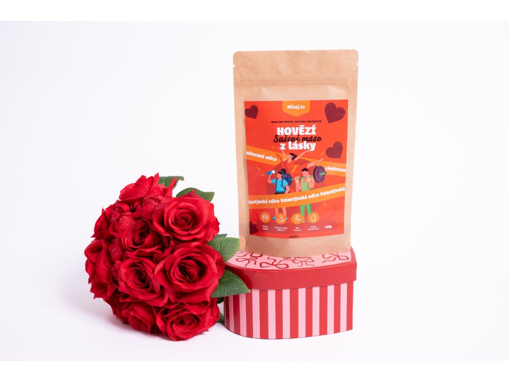 Limitovaná valentýnská edice hovězího sušeného masa s příchutí Country – lehce kouřová, kořeněná, taková ta „oheň, dřevo, dálky“ energie… jen bez bláta na botách.