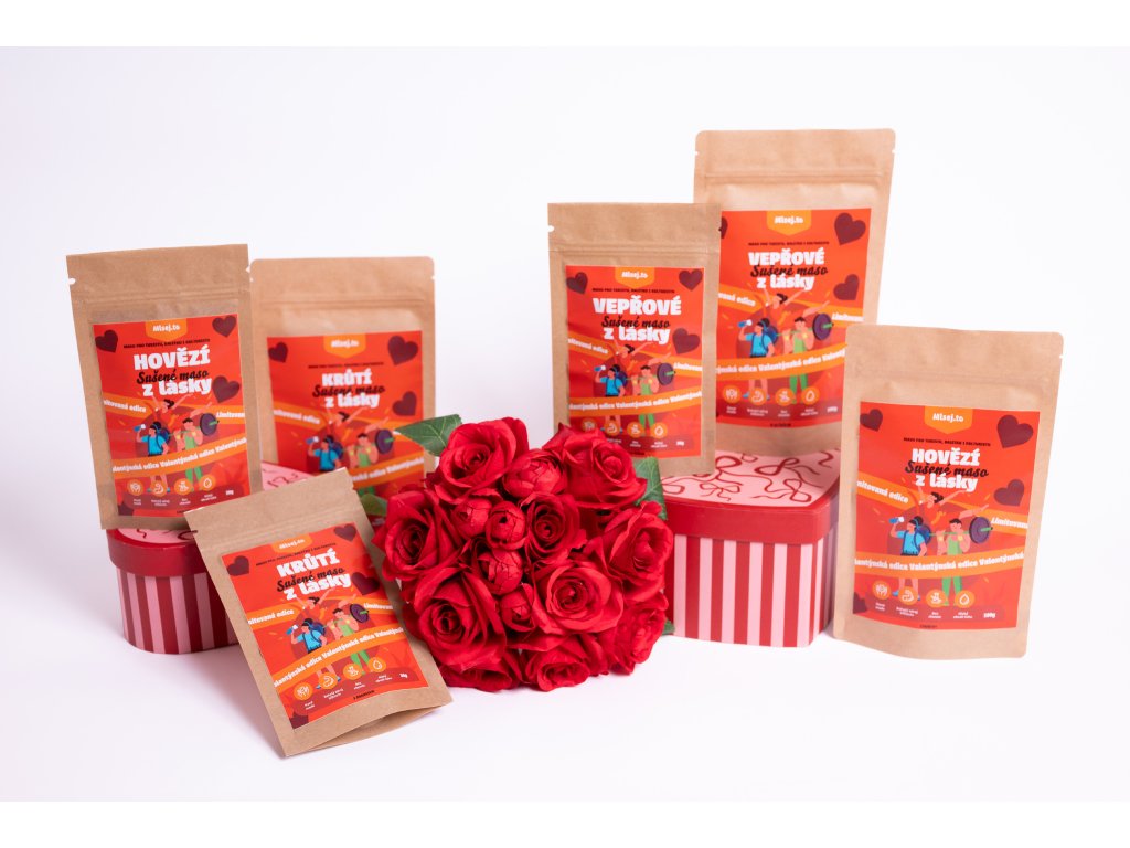 Limitovaná valentýnská edice krůtího sušeného masa s kombinací ananasu a sweet chilli omáčky – šťavnatá chuť, co tě nejdřív pohladí a pak lehce štípne.